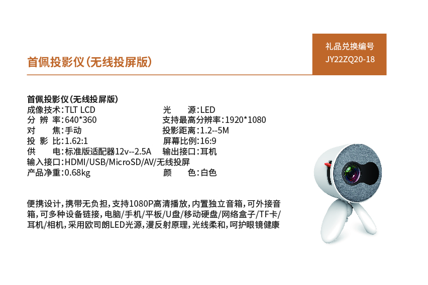 JY22ZQ22-18-首佩投影仪(无线投屏版)