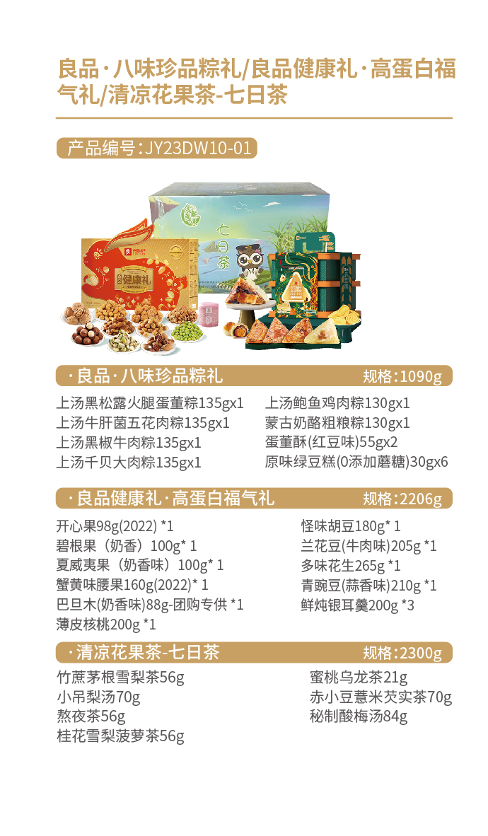 JY23DW10-01-良品·八味珍品粽礼+良品健康礼·高蛋白福气礼+清凉花果茶-七日茶