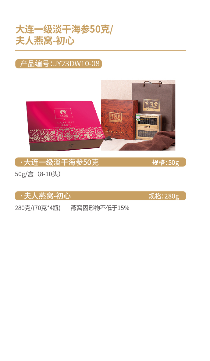 JY23DW10-08-大连一级淡干海参50克+夫人燕窝-初心+