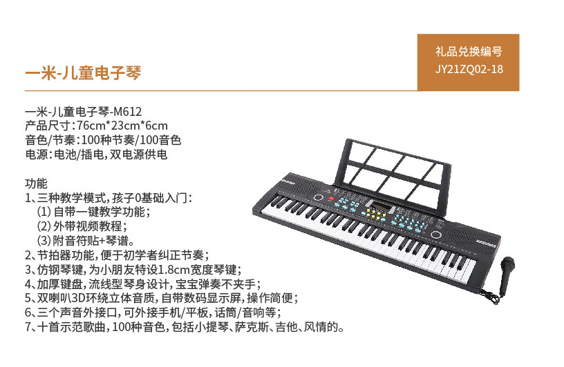 JY21ZQ02-18-一米儿童电子琴-M612