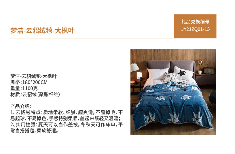 JY21ZQ01-15-梦洁MEE云貂绒毯-大枫叶1050500031