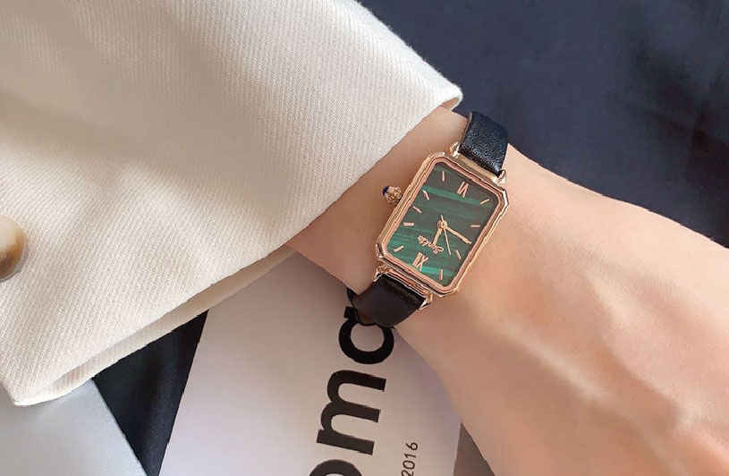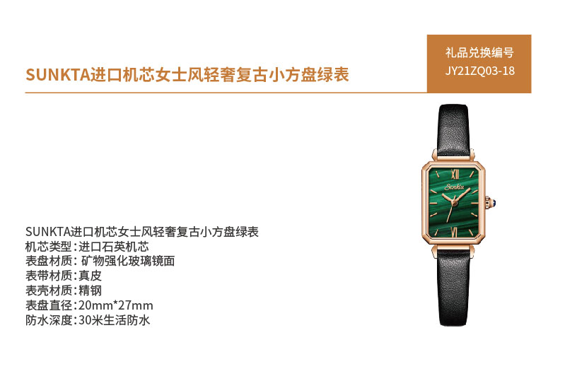 JY21ZQ03-18-SUNKTA进口机芯女士ins风轻奢复古小方盘绿表