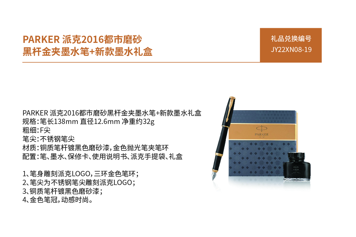 JY22XN08-19-PARKER 派克2016都市磨砂黑杆金夹墨水笔+新款墨水礼盒