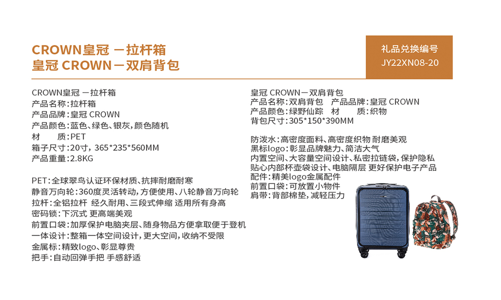 JY22XN08-20-CROWN皇冠 -拉杆箱+皇冠 CROWN-双肩背包