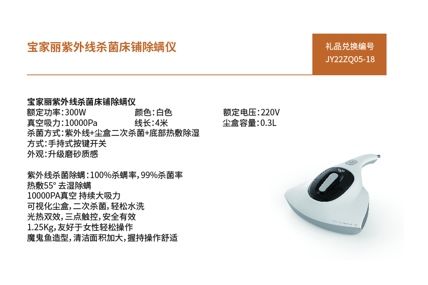 JY22ZQ05-18-宝家丽紫外线杀菌床铺除螨仪