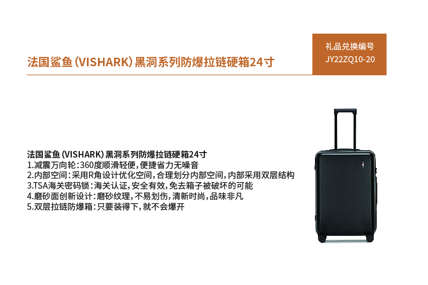 Y22ZQ10-20-法国鲨鱼(VISHARK)黑洞系列防爆拉链硬箱24寸